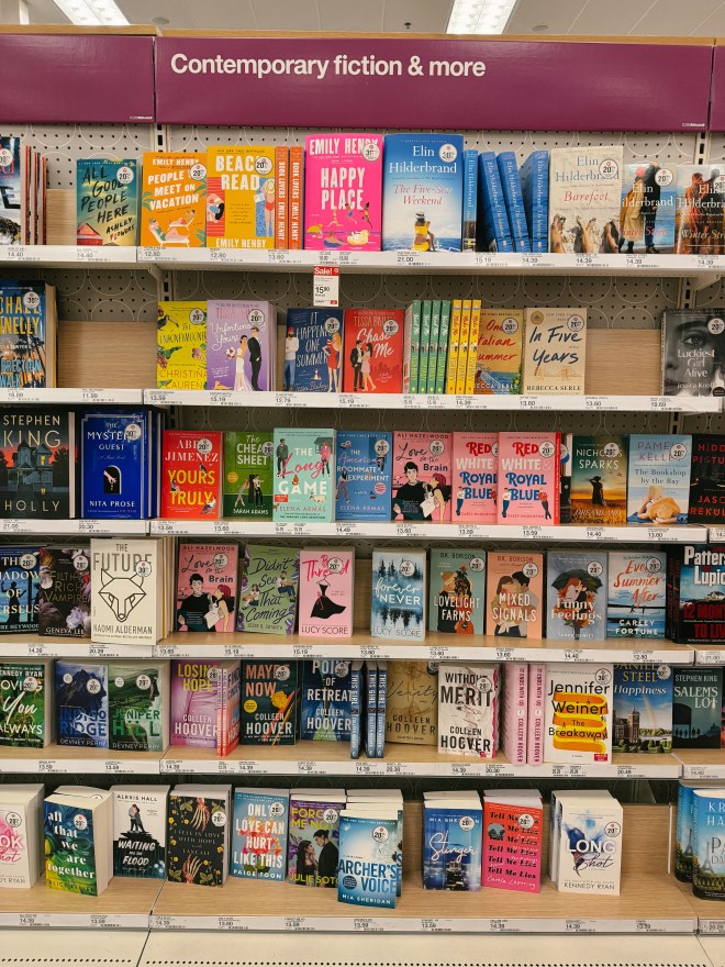 So anyway, as you may have seen last week, I got back on Bookstagram just in time to document the end of my Throne of Glass journey and get to House of Flame and Shadow (hopefully without spoilers). My romantasy phase is alive and well. Being able to gush with bookish friends new and old made me want to see what else everyone is reading so I can joining those conversations, too. And you know what? I am CONSUMED with thoughts of books. While it used to occur to me to make time to read maybe once a week, I find myself reaching for books all throughout the day. It’s like a muscle I let atrophy, and now it’s getting stronger with practice. I walked through the contemporary romance section of Target the other day. I’m embarrassed to say that there was a time when I would have rolled my eyes at the cutesy covers and tropes. But there was also a time when I would have gone absolutely feral in that section, not worried about what it said about me. This time, I saw tons of romance titles that I’d added to my TBR after seeing people gush about them online. It didn’t once cross my mind to worry if I thought they would be “good.” Books are not moral. READING IS GOOD.
